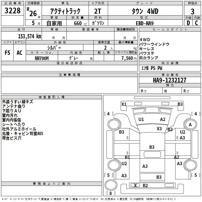 HONDA ACTY TRUCK 2014 г., лот № 3228