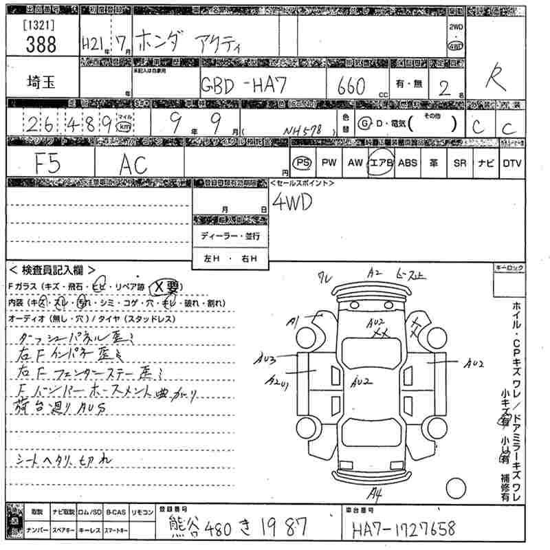 HONDA ACTY TRUCK 2009 г., лот № 388