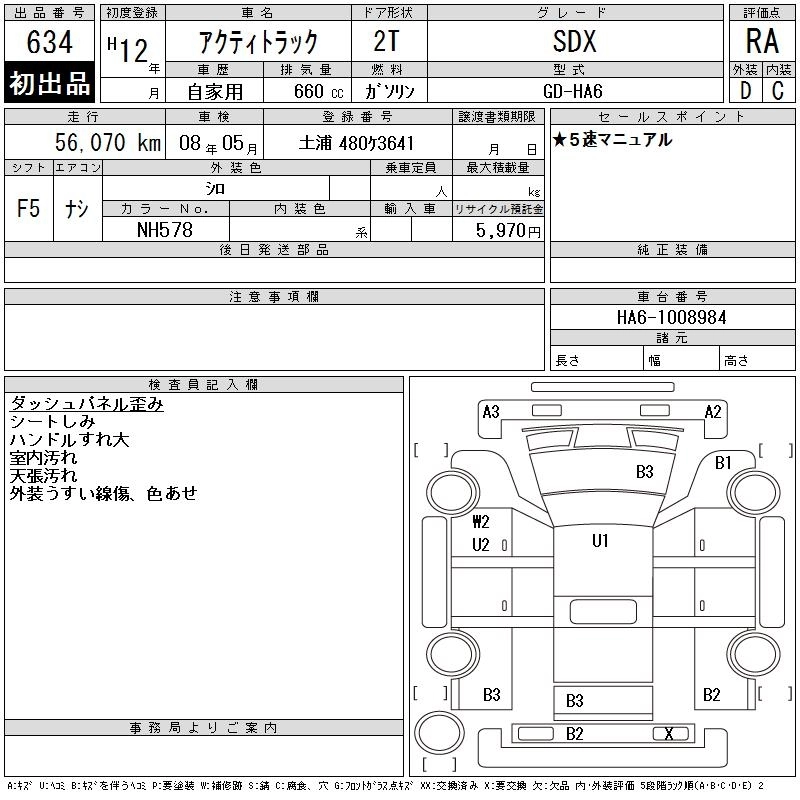 HONDA ACTY TRUCK 2000 г., лот № 634