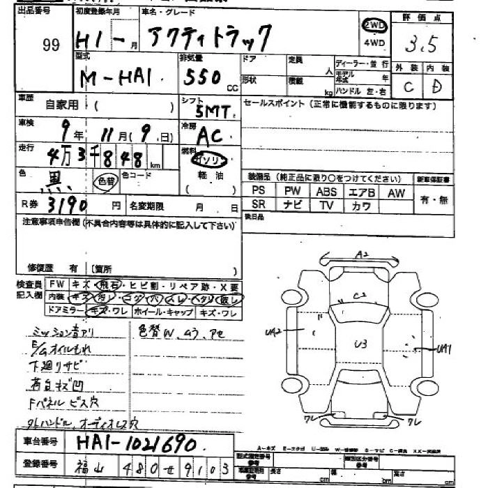 HONDA ACTY TRUCK 1989 г., лот № 99