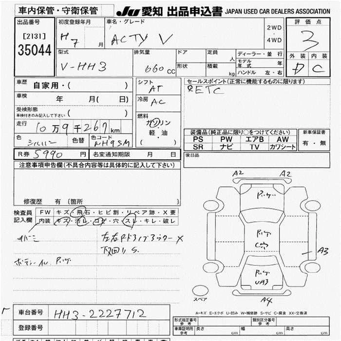 HONDA ACTY VAN 1995 г., лот № 35044