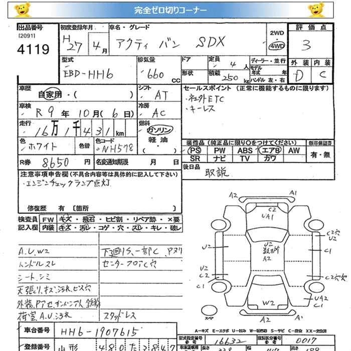 HONDA ACTY VAN 2015 г., лот № 4119