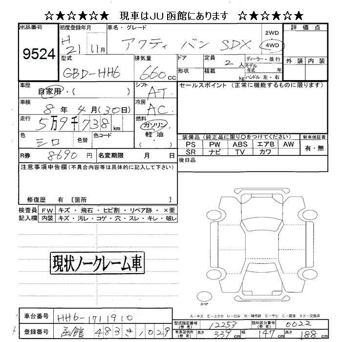Статус не продан Лот 9524 Аукцион JU Hokkaido Дата аукциона 23.01.2026