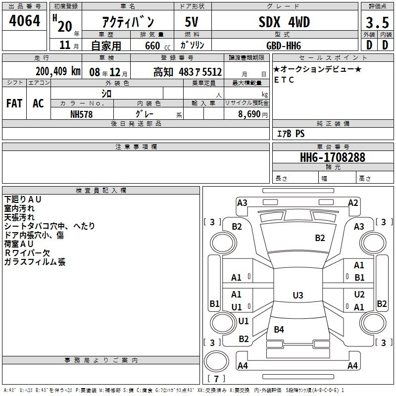 HONDA ACTY VAN 2008 г., лот № 4064