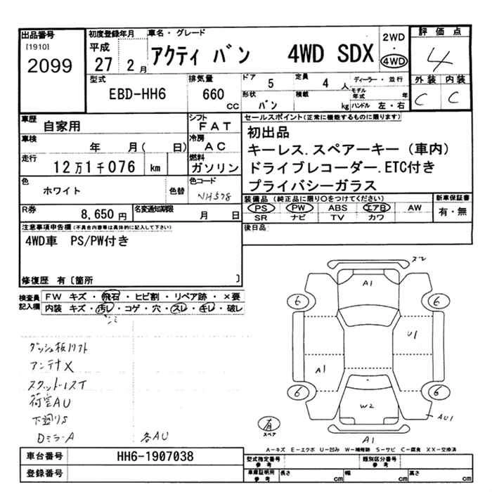 HONDA ACTY VAN 2015 г., лот № 2099