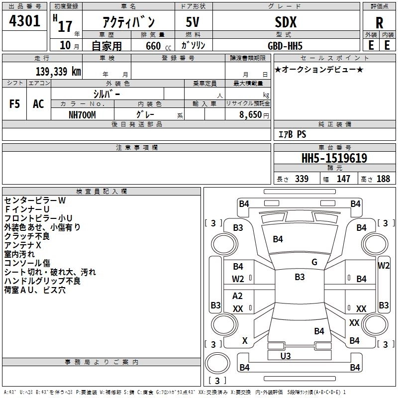 Статус выставлен на аукцион Лот 4301 Аукцион TAA Shikoku Дата аукциона 10.03.2026