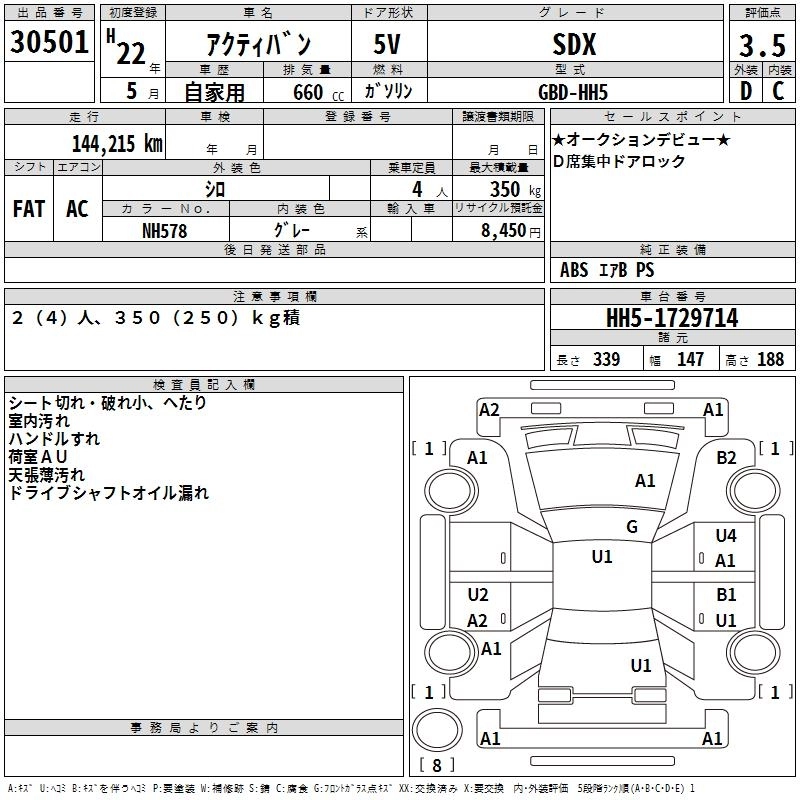 HONDA ACTY VAN 2010 г., лот № 30501