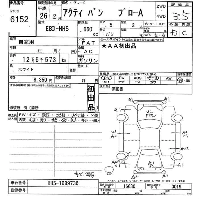 HONDA ACTY VAN 2014 г., лот № 6152