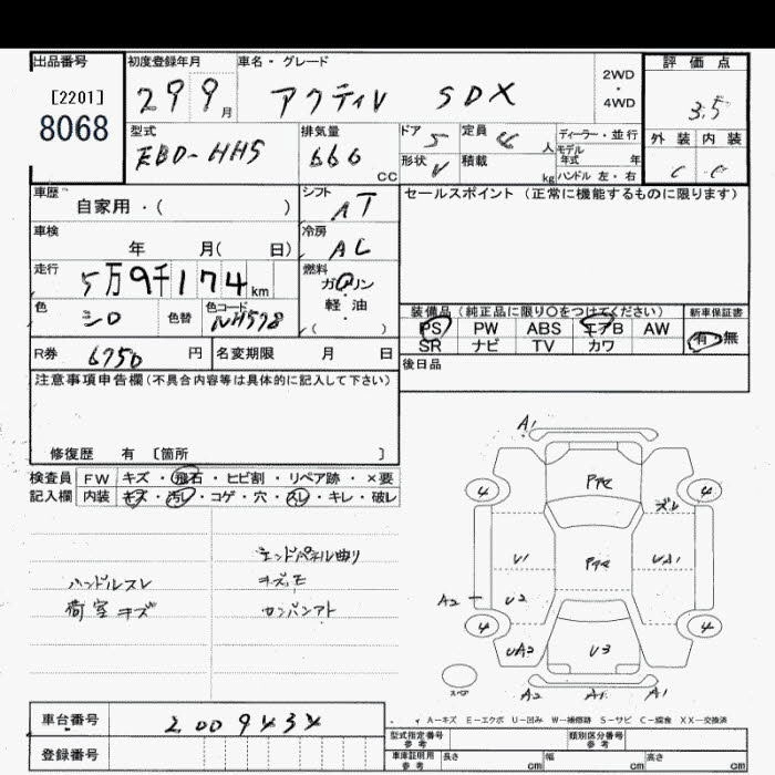HONDA ACTY 2017 г., лот № 8068