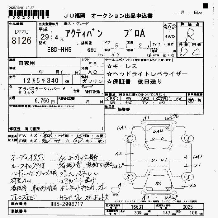 Статус выставлен на аукцион Лот 8126 Аукцион JU Fukuoka Дата аукциона 24.10.2025
