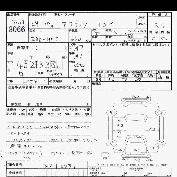 HONDA ACTY 2017 г., лот № 8066