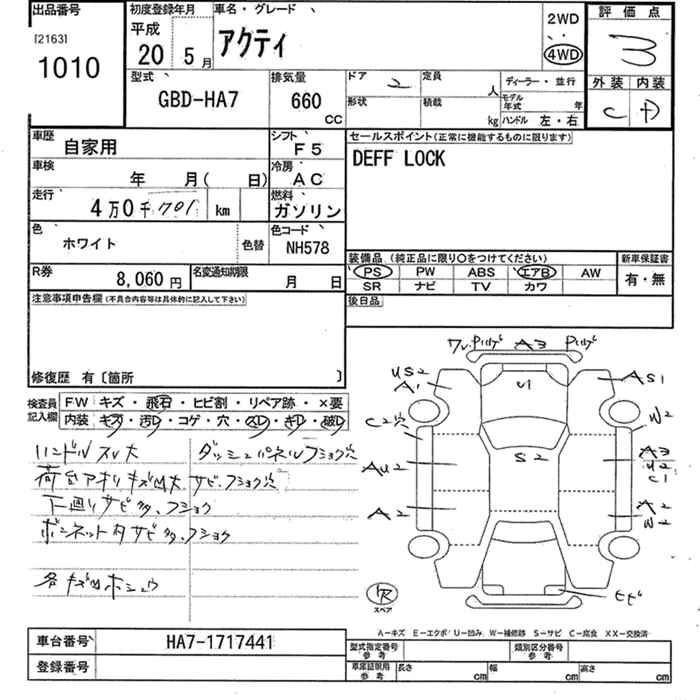 HONDA ACTY 2008 г., лот № 1010