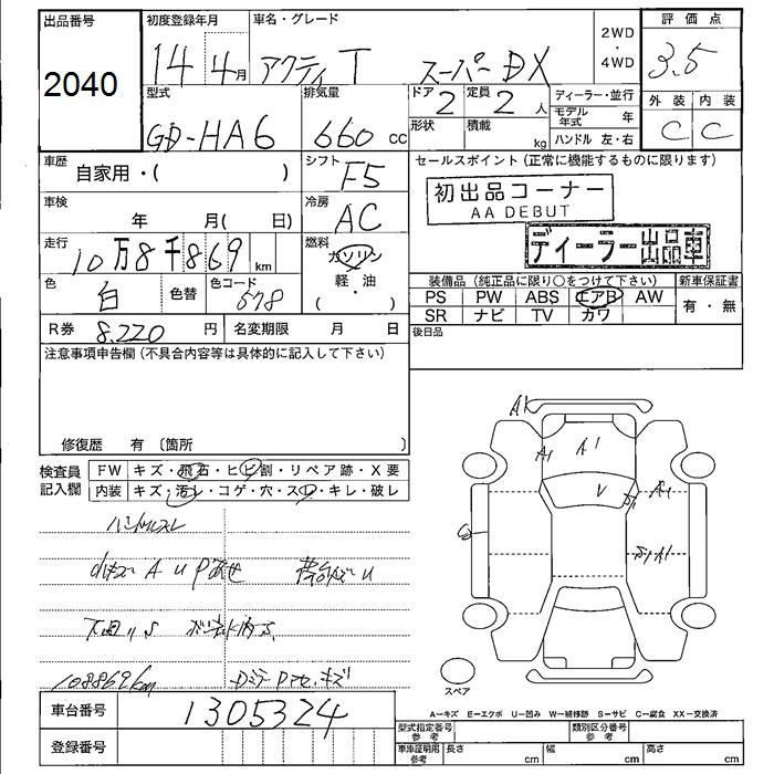 HONDA ACTY 2002 г., лот № 2040