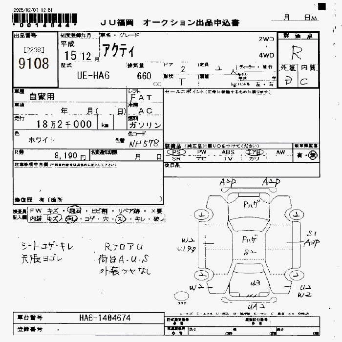Статус выставлен на аукцион Лот 9108 Аукцион JU Fukuoka Дата аукциона 13.03.2026