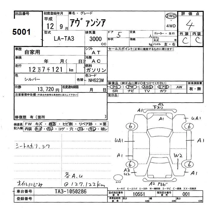 HONDA AVANCIER 2000 г., лот № 5001