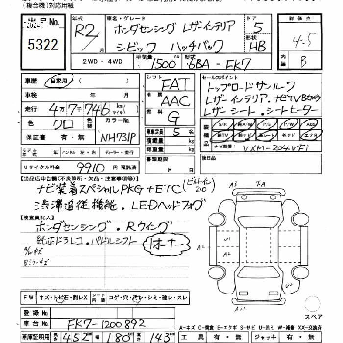 Год выпуска2020 Пробег 47 000 км КузовFK7 Комплектация HATCHBACK HONDA SENSING