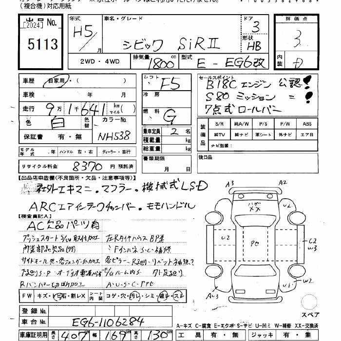 Год выпуска1993 Пробег 91 000 км КузовEG6 КомплектацияSiR-2