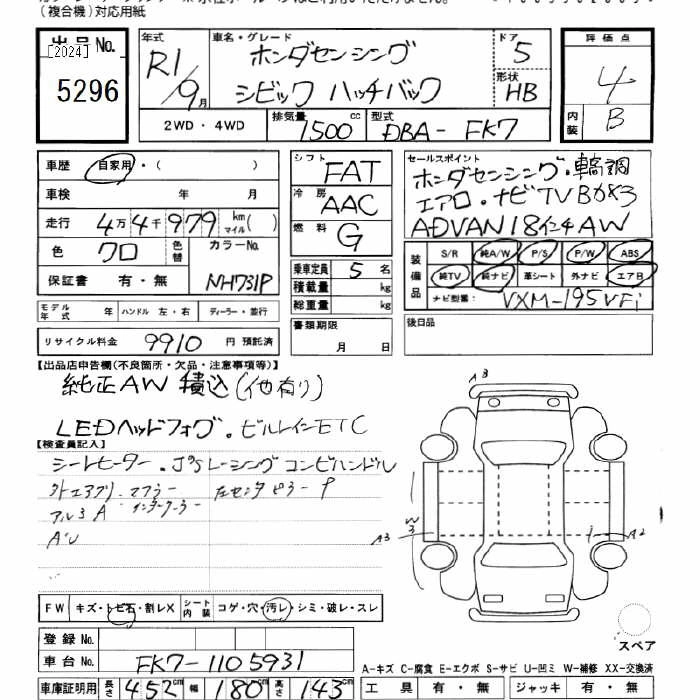HONDA CIVIC 2019 г., лот № 5296