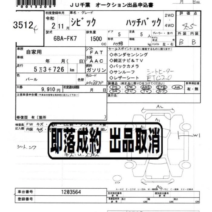 Статус не продан Лот 3512 Аукцион JU Chiba Дата аукциона 23.01.2026