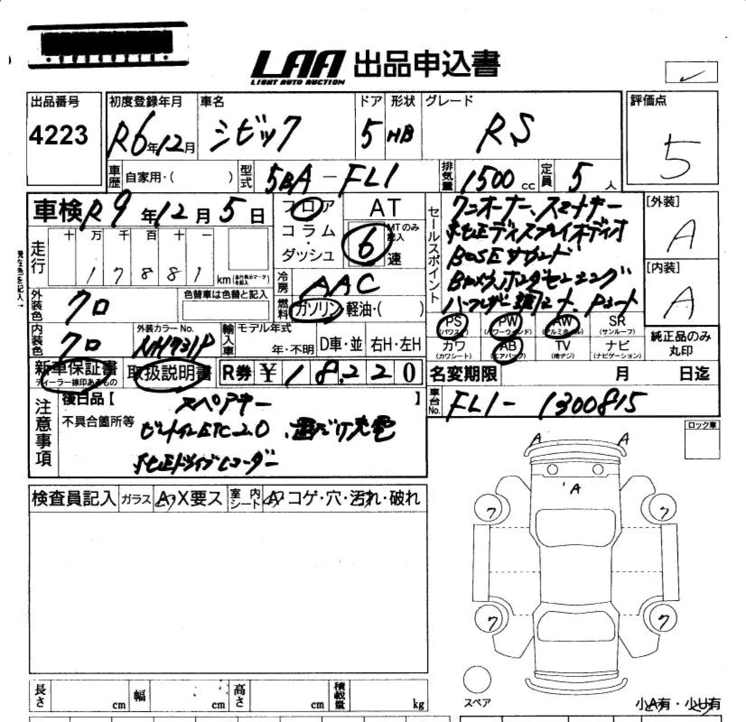Статус не продан Лот 4223 Аукцион LAA Okayama Дата аукциона 23.01.2026