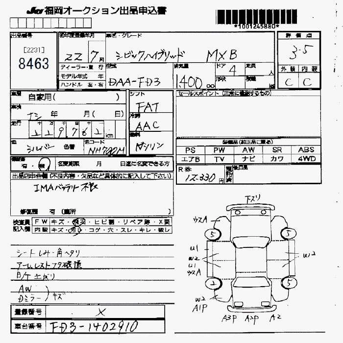 Статус продан Лот 8463 Аукцион JU Fukuoka Дата аукциона 23.01.2026