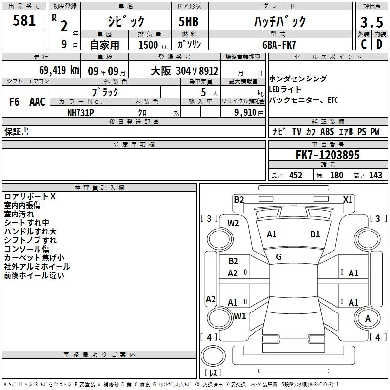 Итоговая цена авто на аукционе 1 453 000 ¥