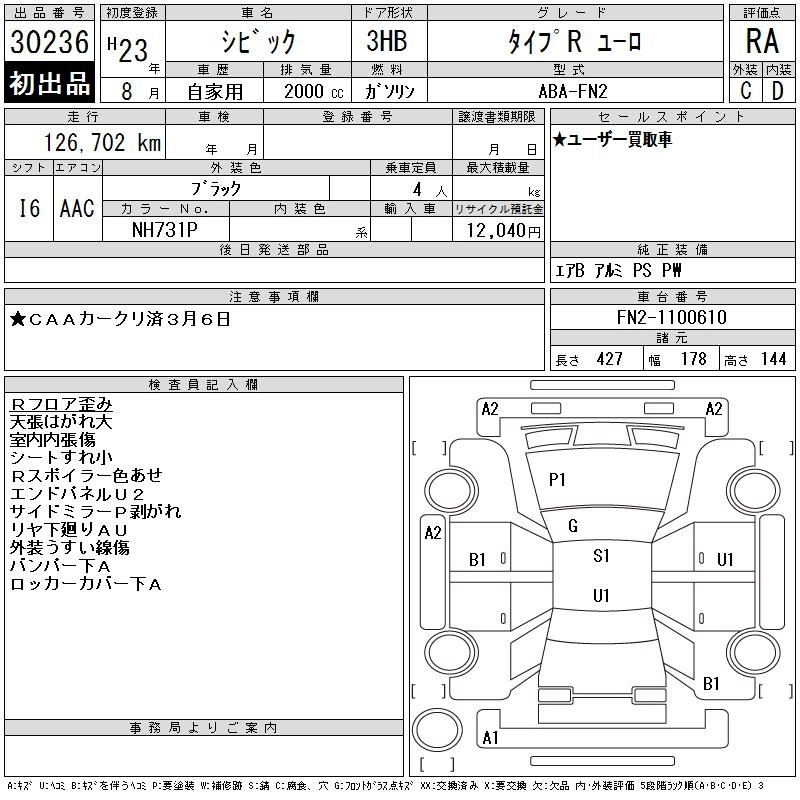 Статус выставлен на аукцион Лот 30236 Аукцион CAA Chubu Дата аукциона 11.03.2026