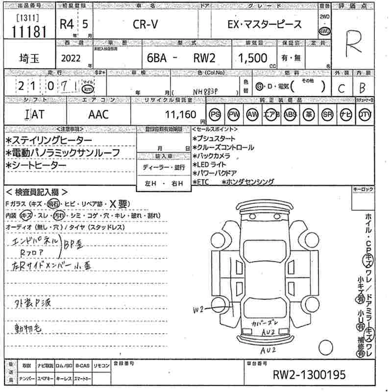 HONDA CR-V 2022 г., лот № 11181