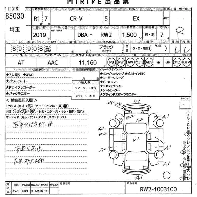 HONDA CR-V 2019 г., лот № 85030