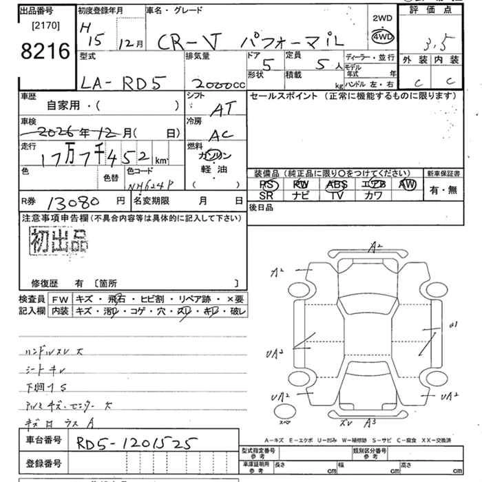 Статус продан Лот 8216 Аукцион JU Tokyo Дата аукциона 26.01.2026