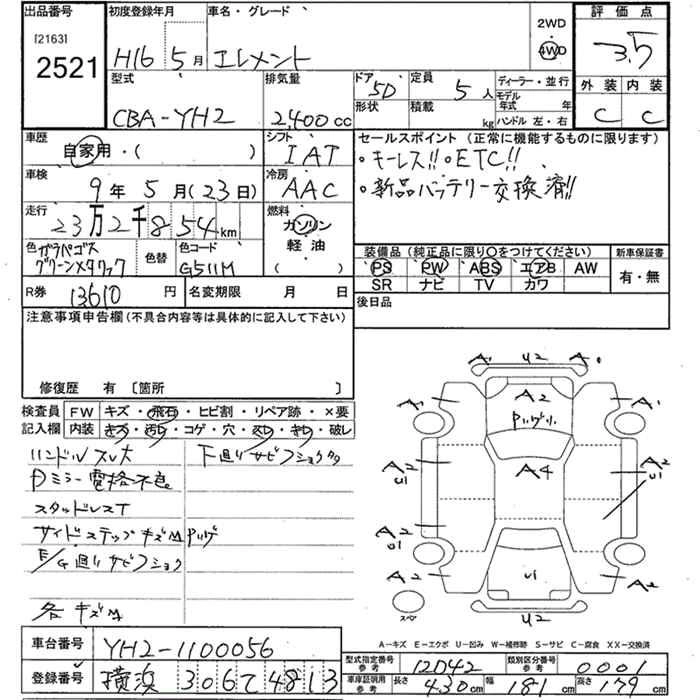HONDA ELEMENT 2004 г., лот № 2521