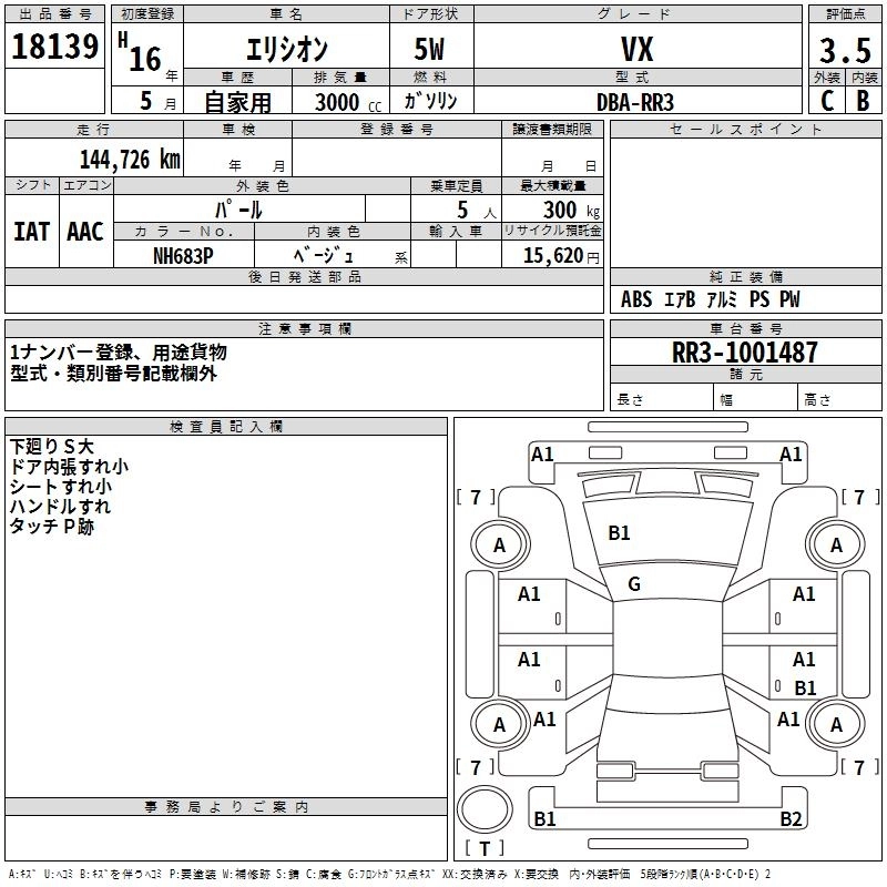 HONDA ELYSION 2004 г., лот № 18139