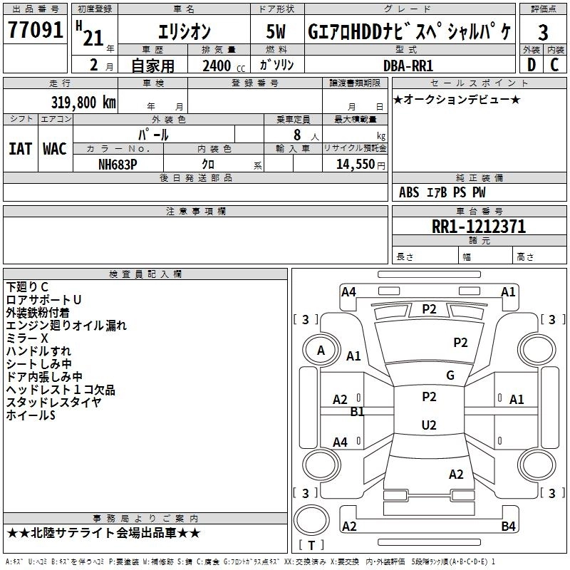 HONDA ELYSION 2009 г., лот № 77091