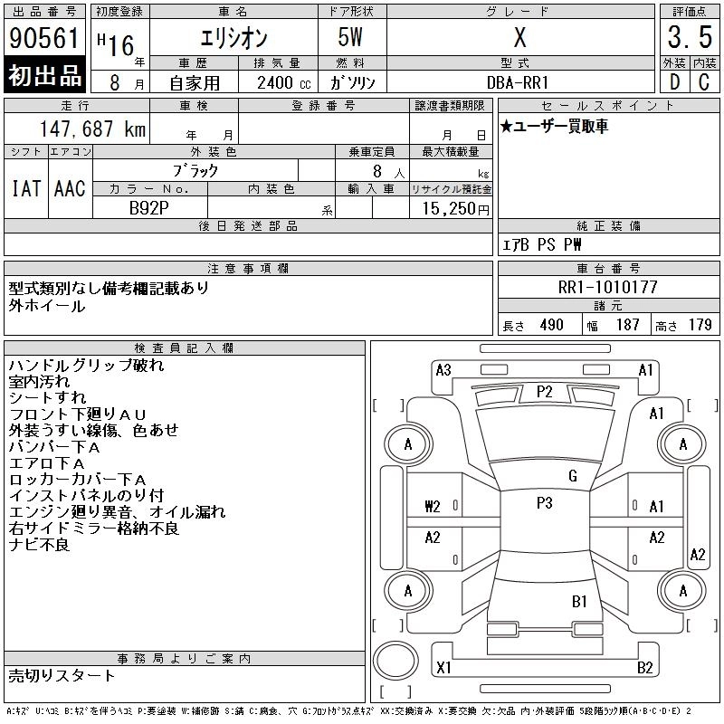 HONDA ELYSION 2004 г., лот № 90561
