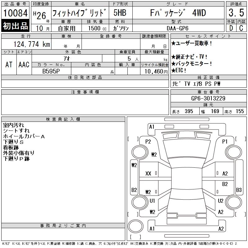 HONDA FIT HYBRID 2014 г., лот № 10084
