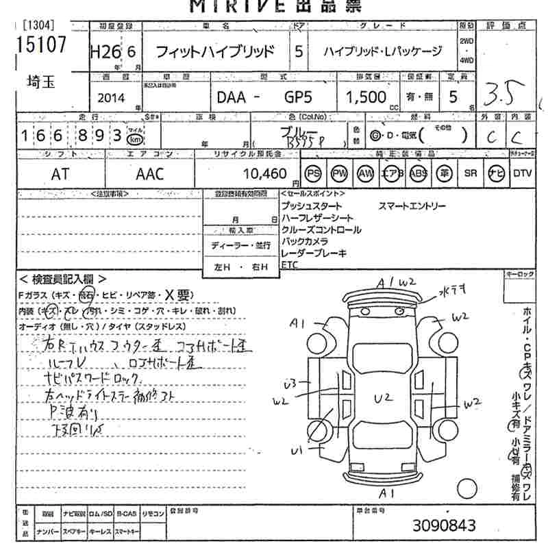 HONDA FIT HYBRID 2014 г., лот № 15107