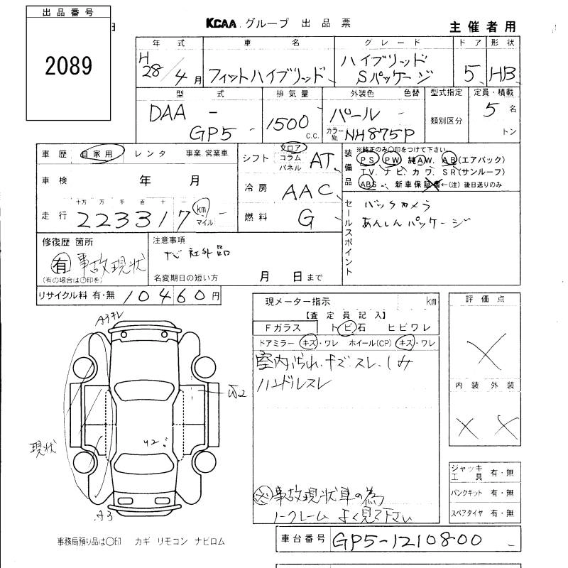 HONDA FIT HYBRID 2016 г., лот № 2089
