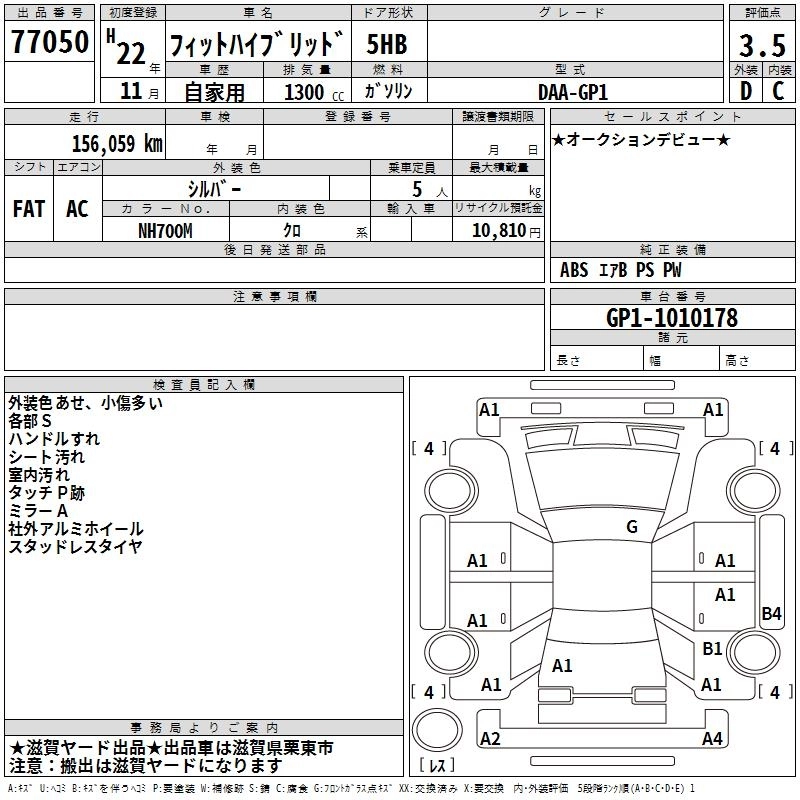 HONDA FIT HYBRID 2010 г., лот № 77050