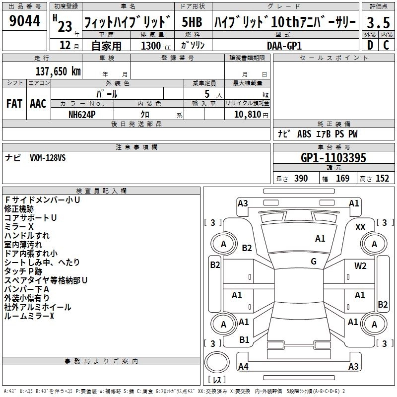 HONDA FIT HYBRID 2011 г., лот № 9044