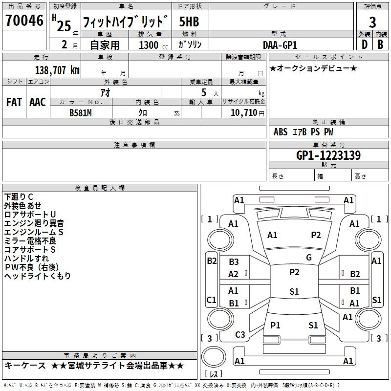 HONDA FIT HYBRID 2013 г., лот № 70046