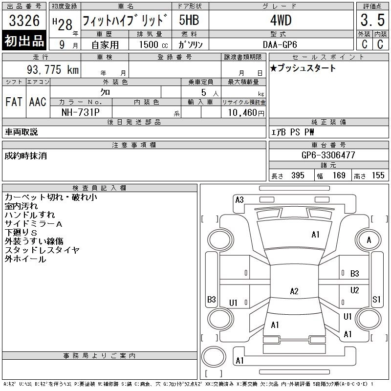 HONDA FIT HYBRID 2016 г., лот № 3326
