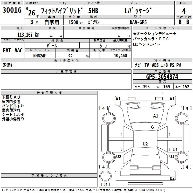 HONDA FIT HYBRID 2014 г., лот № 30016