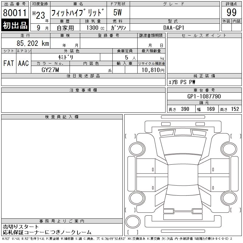 HONDA FIT HYBRID 2011 г., лот № 80011