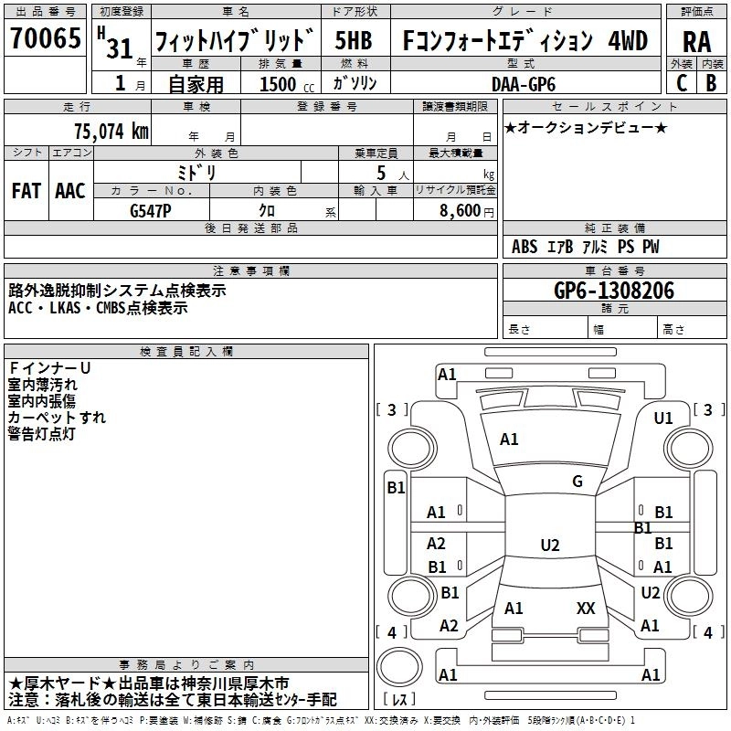 HONDA FIT HYBRID 2019 г., лот № 70065