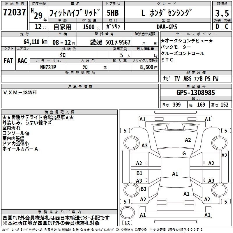 HONDA FIT HYBRID 2017 г., лот № 72037