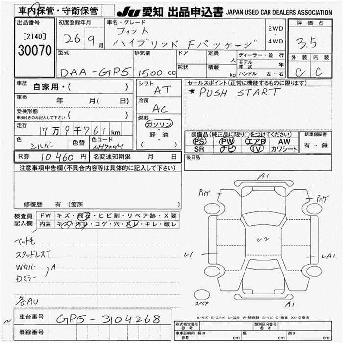 HONDA FIT HYBRID 2014 г., лот № 30070