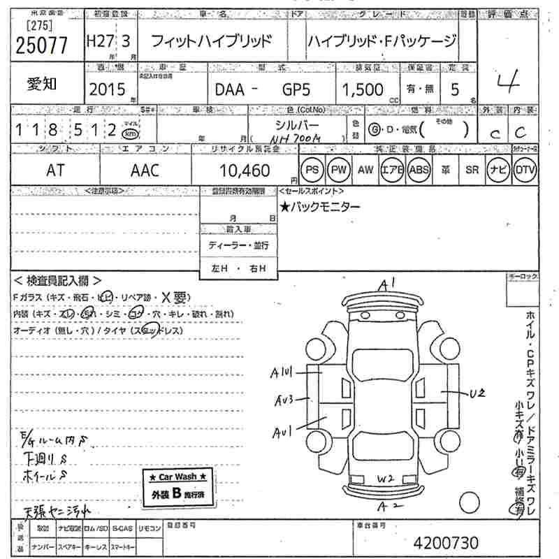 HONDA FIT HYBRID 2015 г., лот № 25077