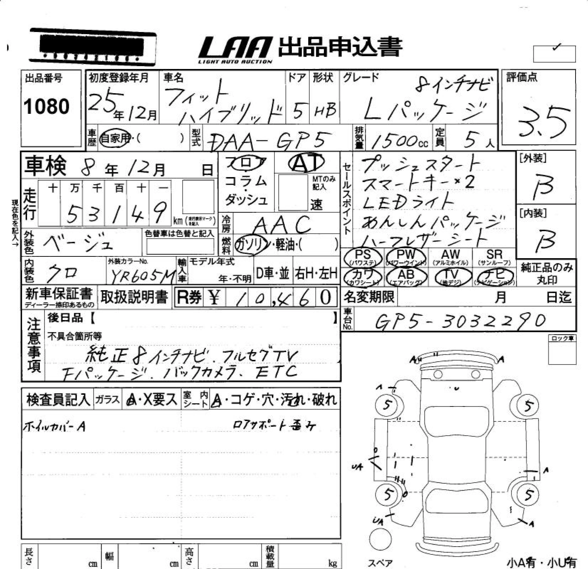 Статус не продан Лот 1080 Аукцион LAA Okayama Дата аукциона 23.01.2026