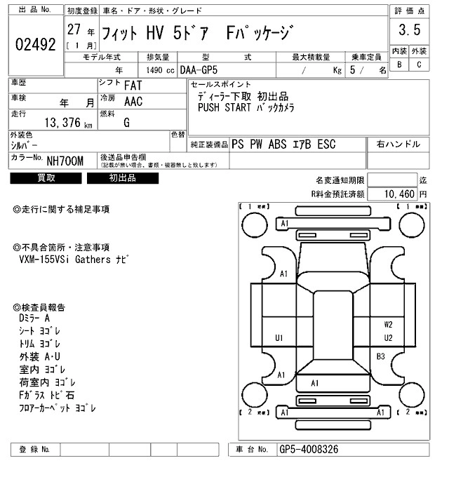 HONDA FIT HYBRID 2015 г., лот № 2492