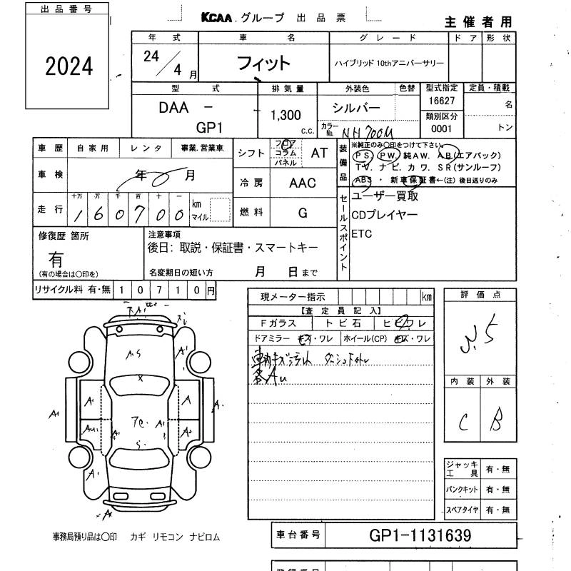 HONDA FIT HYBRID 2012 г., лот № 2024